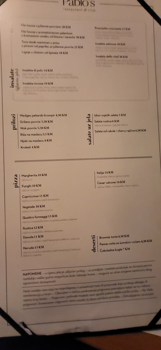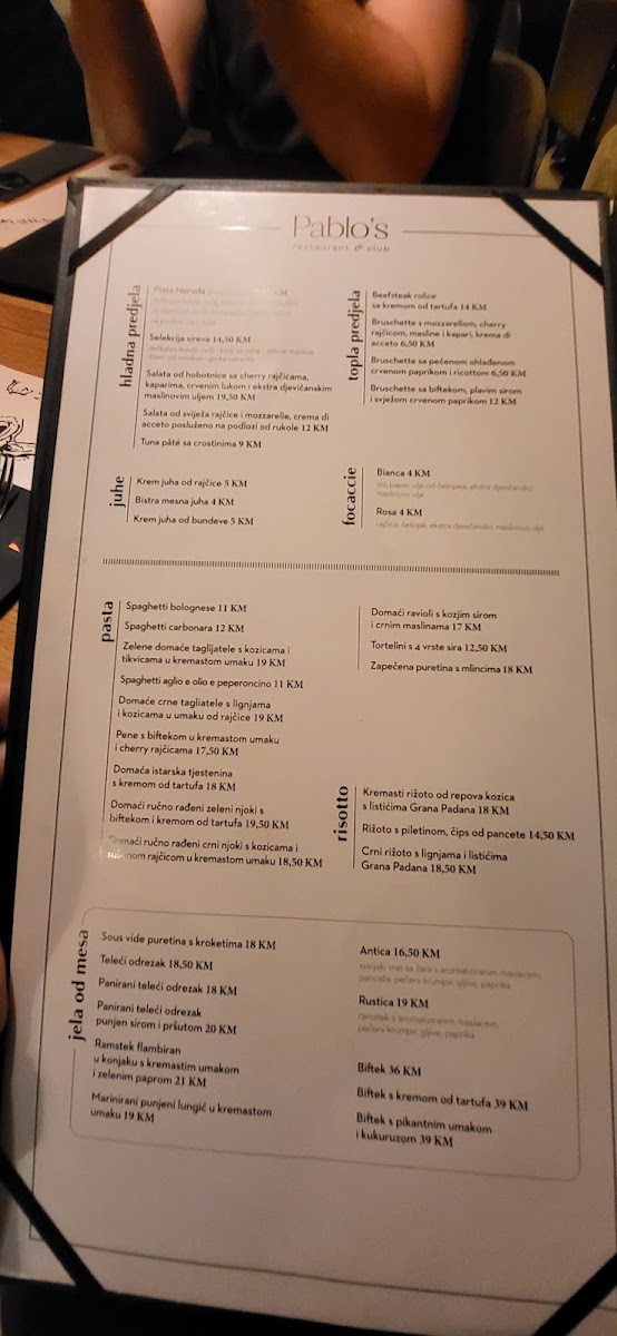 Welcome to Pablo's Restaurant & Club, a hidden gem nestled in the heart of Mostar at Kneza Branimira 11. This charming establishment redefines culinary excellence, offering a menu that tantalizes the taste buds with Italian-inspired dishes. Guests rave about the bruschetta adorned with savory olives and capers, and the green pasta with shrimps and zucchini that leaves a lasting impression.
